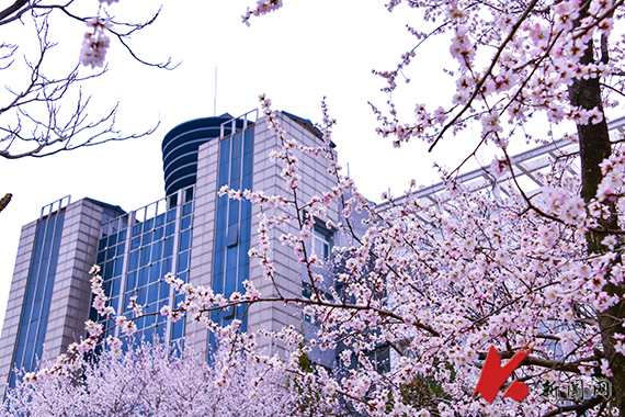 連翹金黃,櫻花如雪,——遼寧科技大學的春天從不遲到?!坝埠恕钡墓た圃盒E先崦来貉b,師生們在花香中奔赴課堂,構成了一幅獨特的遼科大春景圖。