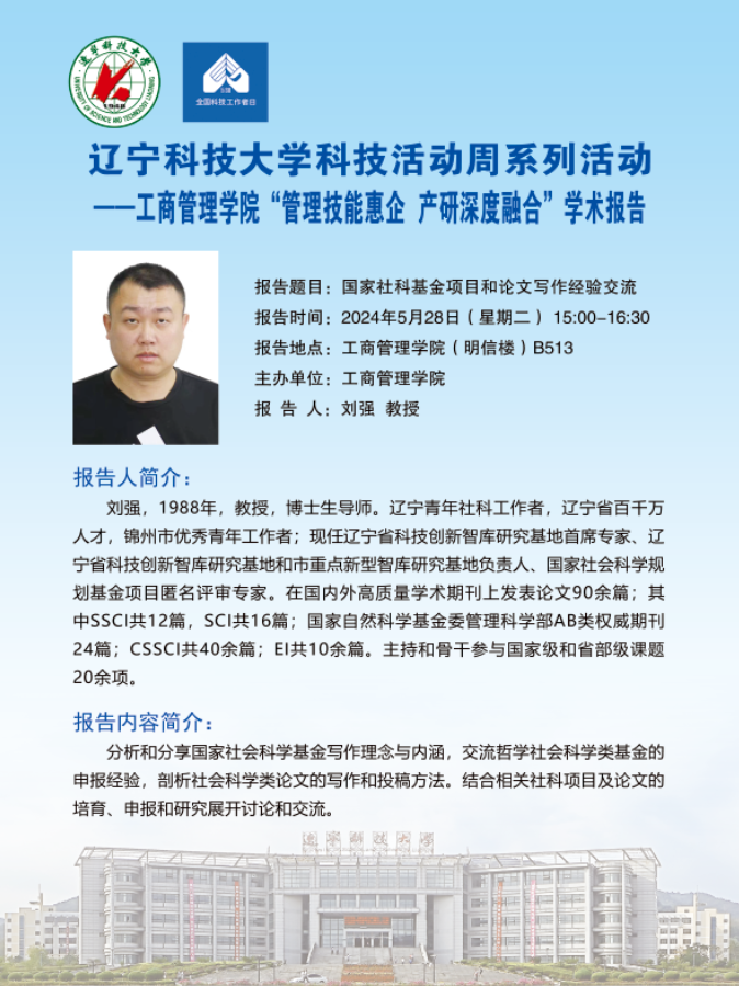 【科技活動周學術預告】國家社科基金項目和論文寫作經驗交流