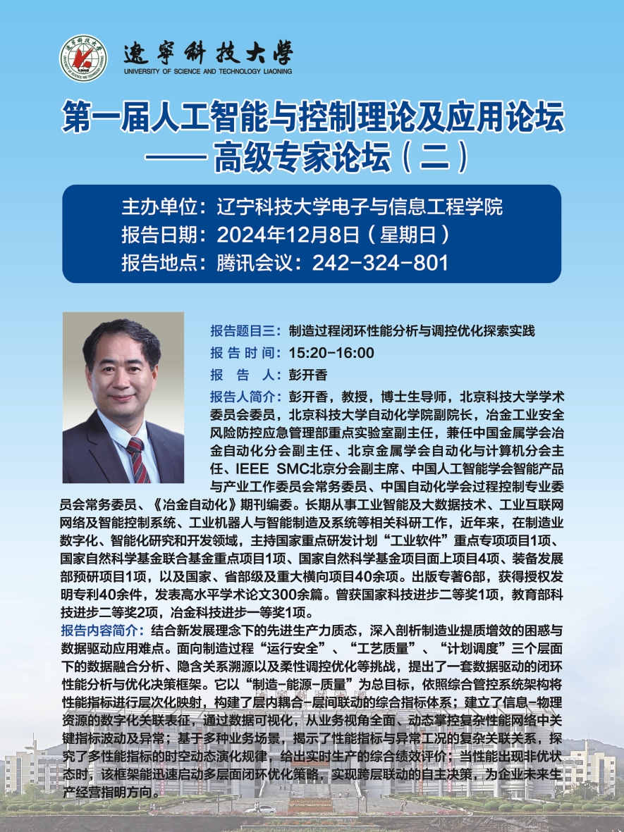 學(xué)術(shù)預(yù)告:第一屆人工智能與控制理論及應(yīng)用論壇