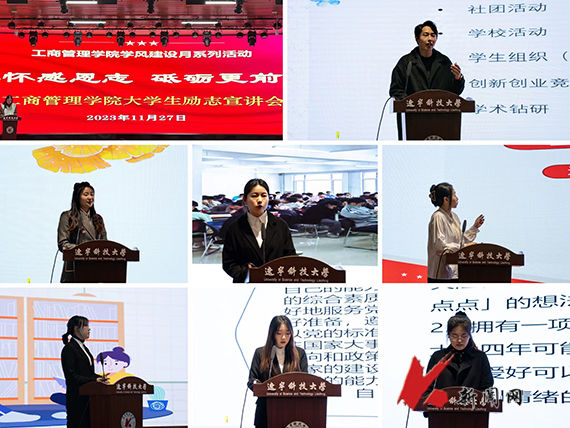 11月27日,遼寧科技大學工商管理學院舉辦大學生勵志宣講會,主題為“心懷感恩志,砥礪更前行”,旨在營造勤學奮進的學習氛圍,發揮優秀學生的典型示范作用,引導和激勵廣大學生勵志成才。