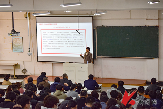 馬克思主義學院教師趙俊愛教授在博學樓C102,為計算機與軟件工程學院師生代表、創新創業學院教職工代表作題目為《深刻理解中國式現代化》的專題宣講報告。趙俊愛分別從“歷史視角——中國式現代化在中國的歷程”“理論視角——中國式現代化是什么,干什么”“實踐視角——中國式現代化怎么干”三個方面闡述了以中國式現代化全面推進中華民族偉大復興的深刻意蘊,為學習貫徹黨的二十大精神,正確理解和全面把握中國式現代化理論提供參考。趙俊愛說,要堅定不移地聽黨話、跟黨走,既要懷抱夢想又要腳踏實地,敢想、敢為,不斷將新思想新觀點新論斷轉化為學校改革發展的生動實踐,不斷推進學校教育教學、人才培養、科學研究、服務社會和國際化辦學高質量發展。