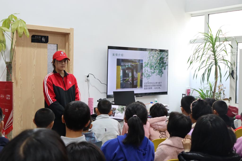 活動(dòng)中,由經(jīng)法學(xué)院法學(xué)專(zhuān)業(yè)的五名學(xué)生依次為“夢(mèng)想之家”的孩子們進(jìn)行了有關(guān)法律知識(shí)的宣傳講解,“小紅帽”志愿者們通過(guò)近期熱映的電影《第二十條》中根據(jù)真實(shí)案例改編的情節(jié)向在場(chǎng)孩子們講述了相關(guān)法律知識(shí),包括正當(dāng)防衛(wèi)的構(gòu)成條件和界定標(biāo)準(zhǔn)、校園霸凌的表現(xiàn)形式和救濟(jì)方法以及女性自我保護(hù)的重要性和保護(hù)途徑等社會(huì)性問(wèn)題,并對(duì)所舉案例的法律依據(jù)在法條上的具體表述進(jìn)行了總結(jié),告訴孩子們“法不能向不法讓步”,當(dāng)合法權(quán)益受到侵害時(shí),要勇敢地拿起法律武器保護(hù)自己。宣講者們將案例中的知識(shí)點(diǎn)拓展出法律問(wèn)題向孩子們進(jìn)行提問(wèn),利用一問(wèn)一答的形式加深孩子對(duì)法律知識(shí)的理解和消化,增加了互動(dòng)性,得到了良好的宣傳效果。活動(dòng)最后,學(xué)院黨委副書(shū)記張國(guó)華作總結(jié)發(fā)言,他表示,希望今天的普法宣傳可以為孩子們今后的生活和學(xué)習(xí)帶去幫助,在這個(gè)充滿(mǎn)溫情和愛(ài)意的大家庭里讓法律的種子萌芽,同時(shí)也祝福孩子們懷揣著感恩之心走向未來(lái)的錦繡前程。