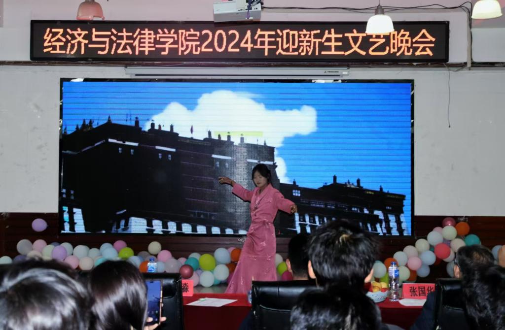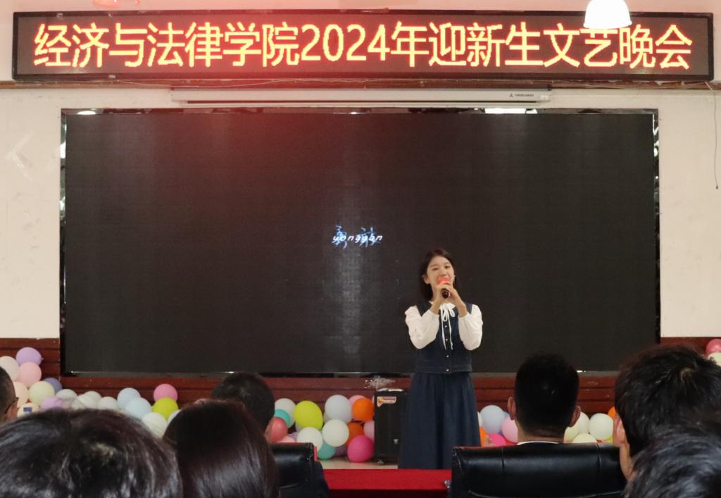 共賞中秋月,人間話團圓。9月17日晚,經法學院于明德樓大學生活動中心舉辦了以“中秋同國慶 師生共團圓”為主題的迎新生文藝晚會。學院黨政領導及輔導員、團學骨干、新生班導生以及全體2024級新生近300人觀看了本場演出。