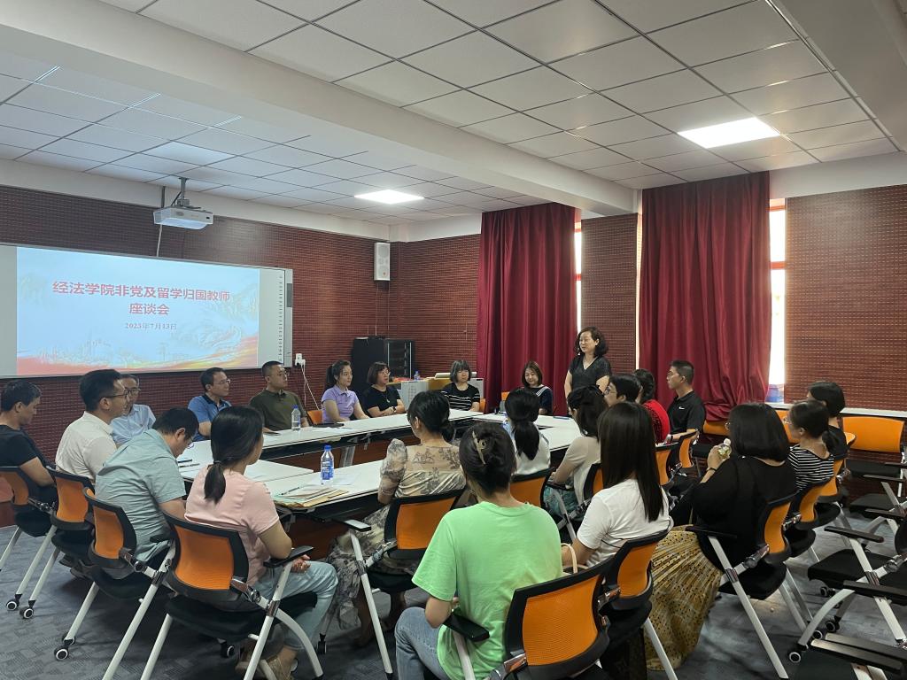 7月13日上午,經法學院于博識樓A407組織召開黨外人士及留學歸國教師座談會,會議由學院黨委成員、統(tǒng)戰(zhàn)委員魏曉妍主持,學院領導班子、黨外人士及留學歸國教師共計20余人參加了會議。