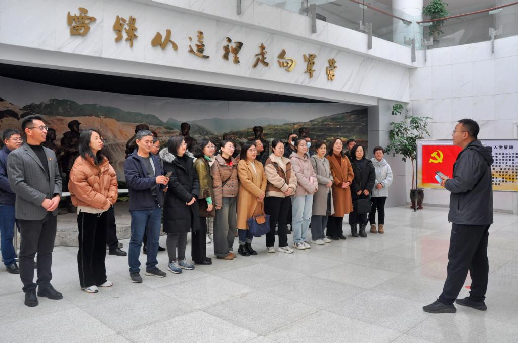 到達紀念館后,在講解員的帶領和講解下,全體教職工認真聆聽了雷鋒同志的生平事跡、工作經歷及獲得的主要榮譽等。通過一張張珍貴的老照片、一本本泛黃的書籍、一件件真實的物品,老師們追尋先烈足跡,深刻領會雷鋒同志助人為樂、無私奉獻、做一顆永不生銹的螺絲釘的精神和把踐行共產主義理想化作自覺行動的人生態度。通過參觀,大家深刻地從雷鋒精神中獲得了人生的啟迪,汲取了奮進力量。賈丹、郭威、陳辛迪、張鵬飛4名青年教師代表發言,分享了本次參觀的感悟,紛紛表示今后一定要以雷鋒為榜樣,把全心全意為人民服務的精神貫徹落實到實際工作和生活中去,以立德樹人為己任,努力踐行“為黨育人,為國育才”,立足崗位,再建新功。學院黨委書記趙智博帶領教師黨員在雷鋒雕像前重溫入黨誓詞,大家舉起右拳莊嚴宣誓,用鏗鏘有力的聲音抒發忠于黨、跟黨走的決心,在誓詞里感悟信仰力量,汲取前行動力。