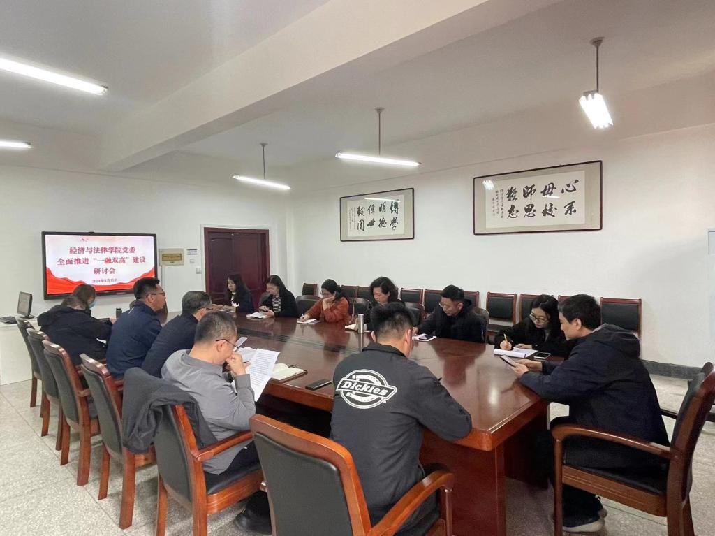 為貫徹落實學校黨委關于全面推進“一融雙高”建設的指導意見,4月15日,經法學院在博識樓A305召開推進“一融雙高”建設研討會。會議由院長郭浩淼主持,學院黨委成員、黨支部書記和系主任參加會議。
