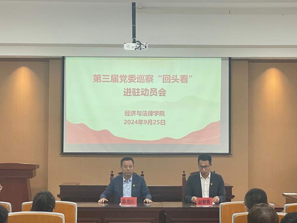 2024年9月25日下午,經(jīng)法學(xué)院在博識(shí)樓A402會(huì)議室召開(kāi)第三屆黨委巡察“回頭看”工作動(dòng)員會(huì)。會(huì)議由學(xué)院黨委書(shū)記趙智博主持,第三屆黨委巡察組全體成員、經(jīng)法學(xué)院全體教師及部分學(xué)生代表參加會(huì)議。