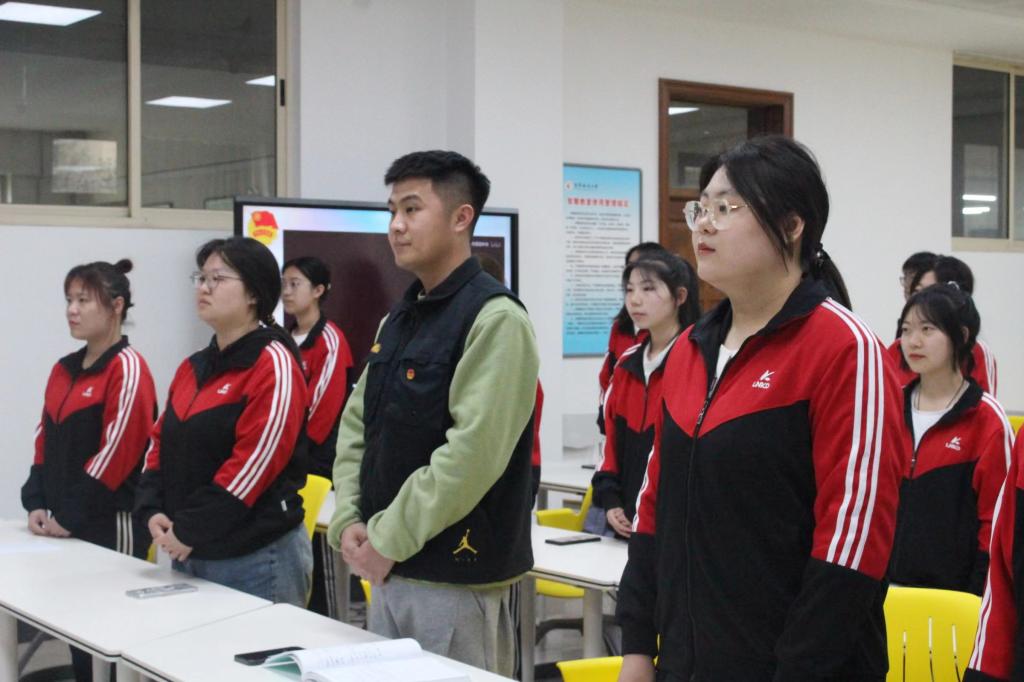金融22-1班王舒峣、張詩雨分別帶領同學們奏唱團歌、重溫入團誓詞,在慷慨激昂的歌聲與充滿赤誠的宣誓中展現出了屬于新時代青年的青春風采。金融22-1班團支部書記肖薈迪帶領大家學習了中國共產黨的光輝歷程,為同學們講述了抗日戰爭的歷史意義以及發生在鞍山的紅色故事。她指出作為共青團員應該以崇仰之情、敬畏之心認真學習黨的歷史,從中汲取新的智慧和力量,繼續為新時代、新征程而奮斗。金融22-1班于翔琳分享了屬于自己的青春故事,以親身經歷鼓勵同學們要肩負起中華民族偉大復興的責任與使命,在堅定的奮斗中彰顯青春力量。