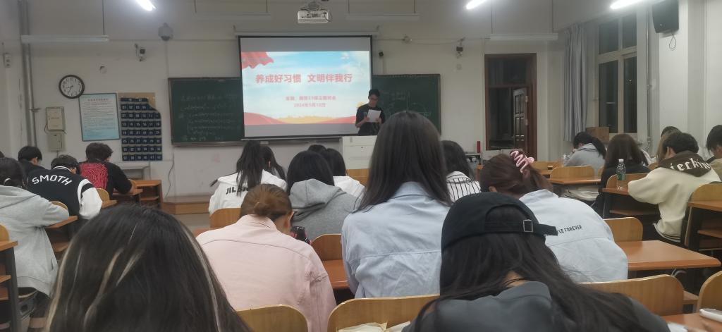 輔導員以“文明伴我行”為主題,通過列舉校園不文明寢室案例和分析學生在個人寢室衛生、寢室文化氛圍等方面存在的問題來讓學生更好地了解寢室衛生環境和寢室文化氛圍對大學生身心發展的重要影響,并通過列舉“‘經法男人幫’,相呼共奮進”的例子來引導學生提高文明素養,與寢室同學在學習和生活中相互激勵、共同進步。最后,輔導員表示,希望同學們在細節處約束自身行為,用實際行動踐行文明行為,在規范中創造價值,爭做新時代文明大學生。