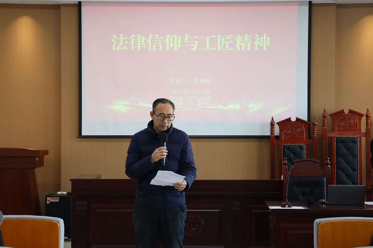 學院黨委副書記張國華對齊瑞鐸的到來致以誠摯的歡迎和感謝,介紹了本次講座的主題以及齊瑞鐸的學習和工作經歷。隨后,齊瑞鐸以身說法,結合自己在法學研究和實踐中的經驗,闡述了專業素養的重要性。他分享了多個典型案例,詳細講解了法律演變、走向以及律師現狀,強調法律信仰是法律職業生涯的根基,希望同學們在未來職業生涯中能堅定信仰,以法律法規為準繩,公正嚴明對待法律工作。通過生動的案例和深刻的剖析,齊瑞鐸讓師生們深刻感受到了法律信仰的力量?,F場法學氛圍濃厚,參會法學生紛紛表示受益匪淺。