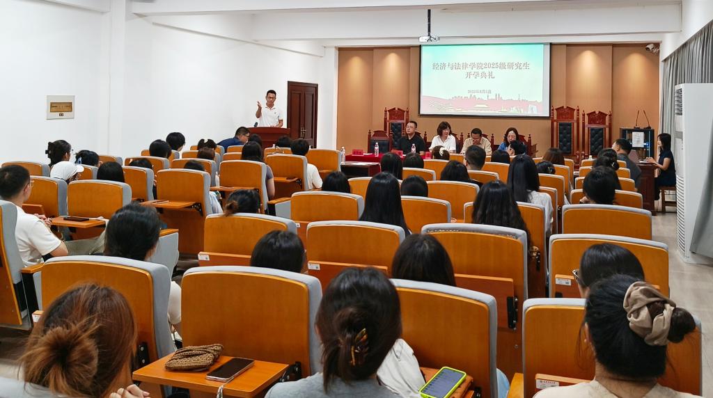 9月5日上午,經(jīng)法學(xué)院于博識樓A402舉行2025級碩士研究生開學(xué)典禮。典禮由學(xué)院黨委書記趙智博主持,學(xué)院領(lǐng)導(dǎo)班子全體成員、輔導(dǎo)員和部分研究生導(dǎo)師代表及2025級57名研究生齊聚一堂,共同見證這一承載期待與夢想的重要時刻。