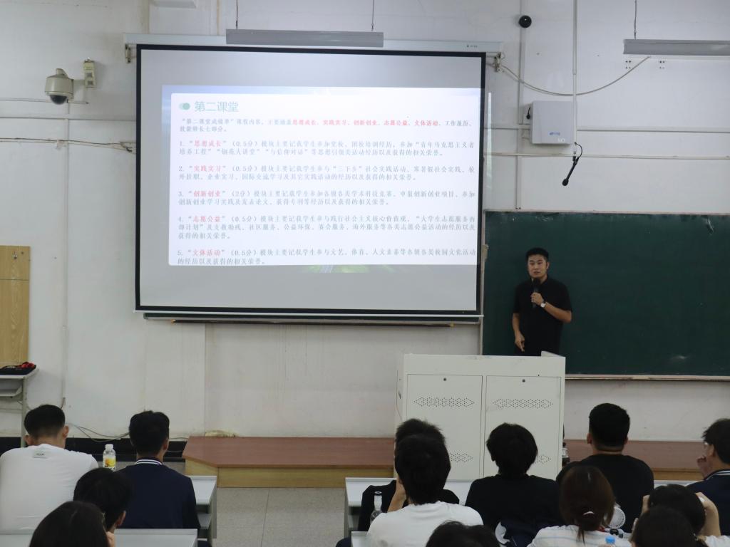 學(xué)院領(lǐng)導(dǎo)班子成員結(jié)合分管工作,為新生送上“成長(zhǎng)指南”:學(xué)院黨委書記趙智博系統(tǒng)講解黨的性質(zhì)宗旨、入黨流程與標(biāo)準(zhǔn),鼓勵(lì)新生樹立遠(yuǎn)大理想,積極向黨組織靠攏,在思想淬煉與實(shí)踐鍛煉中成長(zhǎng)為堪當(dāng)民族復(fù)興大任的時(shí)代新人;黨委副書記張國華聚焦“涵養(yǎng)優(yōu)良學(xué)風(fēng),筑牢學(xué)業(yè)根基”,從大學(xué)學(xué)習(xí)特點(diǎn)、專業(yè)發(fā)展方向、學(xué)風(fēng)建設(shè)要求等方面展開,通過分享優(yōu)秀學(xué)長(zhǎng)學(xué)姐的學(xué)習(xí)經(jīng)驗(yàn),引導(dǎo)新生養(yǎng)成自主學(xué)習(xí)、勤于思考的習(xí)慣,營造“比學(xué)趕超”的良好學(xué)習(xí)氛圍;學(xué)辦主任李路云圍繞校園規(guī)章制度,詳細(xì)解讀教學(xué)管理、考勤考核、寢室管理、獎(jiǎng)懲辦法等內(nèi)容,結(jié)合具體案例強(qiáng)調(diào)遵守規(guī)則的重要性,引導(dǎo)新生樹立規(guī)則意識(shí),規(guī)范日常行為;學(xué)院團(tuán)委書記張鵬飛以“以青春之名 赴時(shí)代之約”為核心,介紹團(tuán)的組織架構(gòu)、品牌活動(dòng)與實(shí)踐平臺(tái),鼓勵(lì)新生積極參與志愿服務(wù)、學(xué)科競(jìng)賽、文化活動(dòng)等,在豐富的團(tuán)活動(dòng)中提升綜合素養(yǎng)、拓展成長(zhǎng)空間。