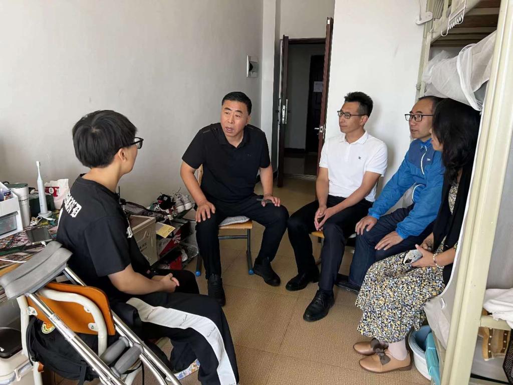 學(xué)院對有較嚴重疾病不適宜參加軍訓(xùn)的同學(xué)提前進行了統(tǒng)計,并開好見習(xí)假條。在了解到法律碩士新生項夢舒因運動造成了腳踝骨折的情況后,學(xué)院為她安排了下鋪,報到之后學(xué)院領(lǐng)導(dǎo)和輔導(dǎo)員帶著牛奶、水果等慰問品專門到寢室去看望她,并安排了志愿者為其提供學(xué)習(xí)生活方面的幫助。