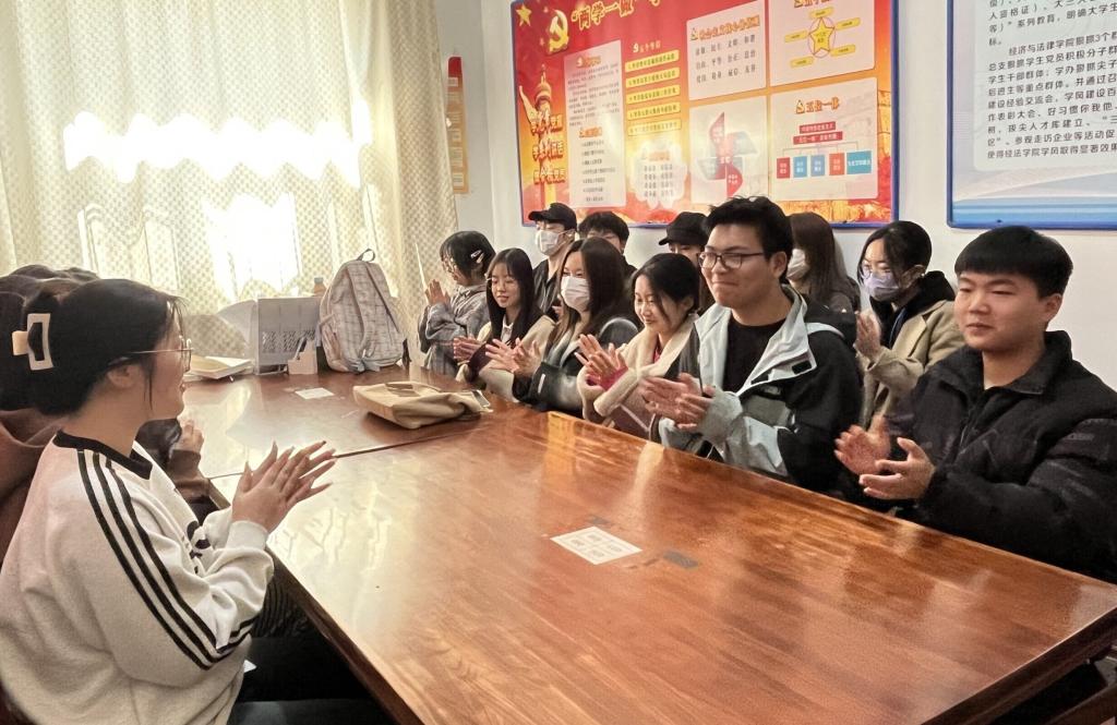 3月29日,經(jīng)法學(xué)院于知行居103黨團(tuán)活動(dòng)室開展“一站式”學(xué)生社區(qū)沙龍--專業(yè)知識(shí)導(dǎo)航未來(lái)職場(chǎng)主題活動(dòng)。本次活動(dòng)由學(xué)院學(xué)生會(huì)生活權(quán)益部干事申佳鷺主持,金融科技22-2劉浩辰作學(xué)習(xí)經(jīng)驗(yàn)分享,經(jīng)法學(xué)院共計(jì)18名2023級(jí)本科生參加活動(dòng)。