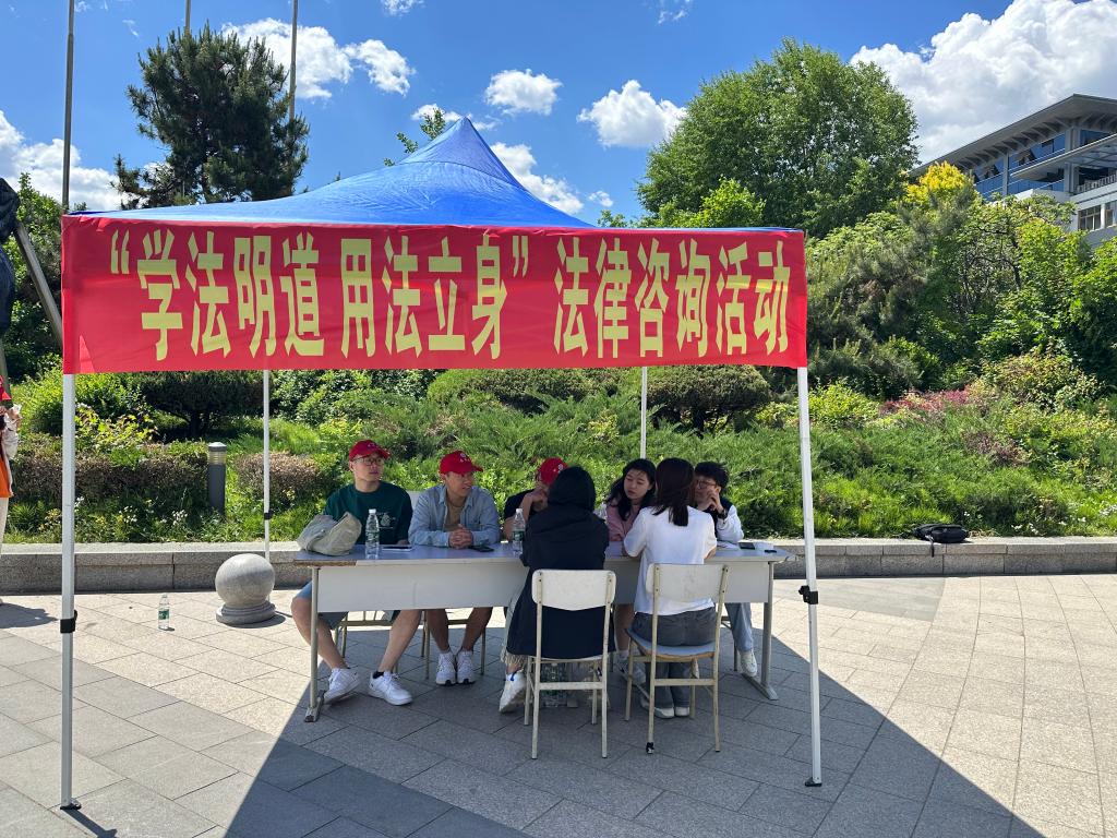 為提升同學們依法辦事、依法維權的能力,增強同學們的法律意識和法治觀念,5月15日,經法學院于博雅廣場組織開展了“學法明道 用法立身”法律咨詢活動。學院黨委副書記張國華、團委副書記張鵬飛以及9名法律碩士研究生“小紅帽”志愿者共同參加了本次活動。