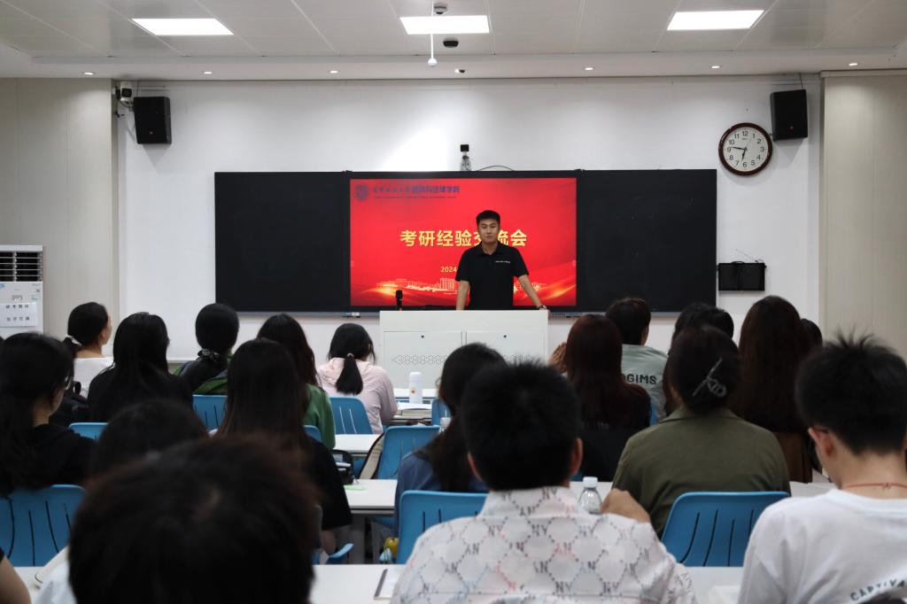 為進一步加強學風建設,幫助學生更好地明晰考研目標,近日,經法學院分專業、多場次組織開展考研經驗交流會。會議由學院團委副書記張鵬飛主持,邀請金融工程20蔡展驊、金融20于淼、法學20唐凌慧、法學20史雯琪4名同學進行考研經驗分享,各年級共計200余人次參加了本次分享會。