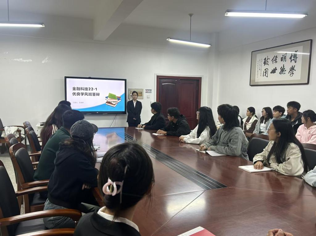 經班級申報,22級、23級共三個班集體參與本次答辯會。答辯過程中,各班班長從班級組織結構、班級管理、文體活動等方面對上一學年班級各項工作的開展情況進行總結,全面展現了班集體在思想建設、學風建設、實踐競賽、志愿公益等方面取得的優秀成績。同時,參評班級良好的班級氛圍和凝聚力,不僅體現了各參評班級積極向上的精神風貌與和諧美好的班級關系,更彰顯了經法學子求真務實、拼搏進取的青春風采。