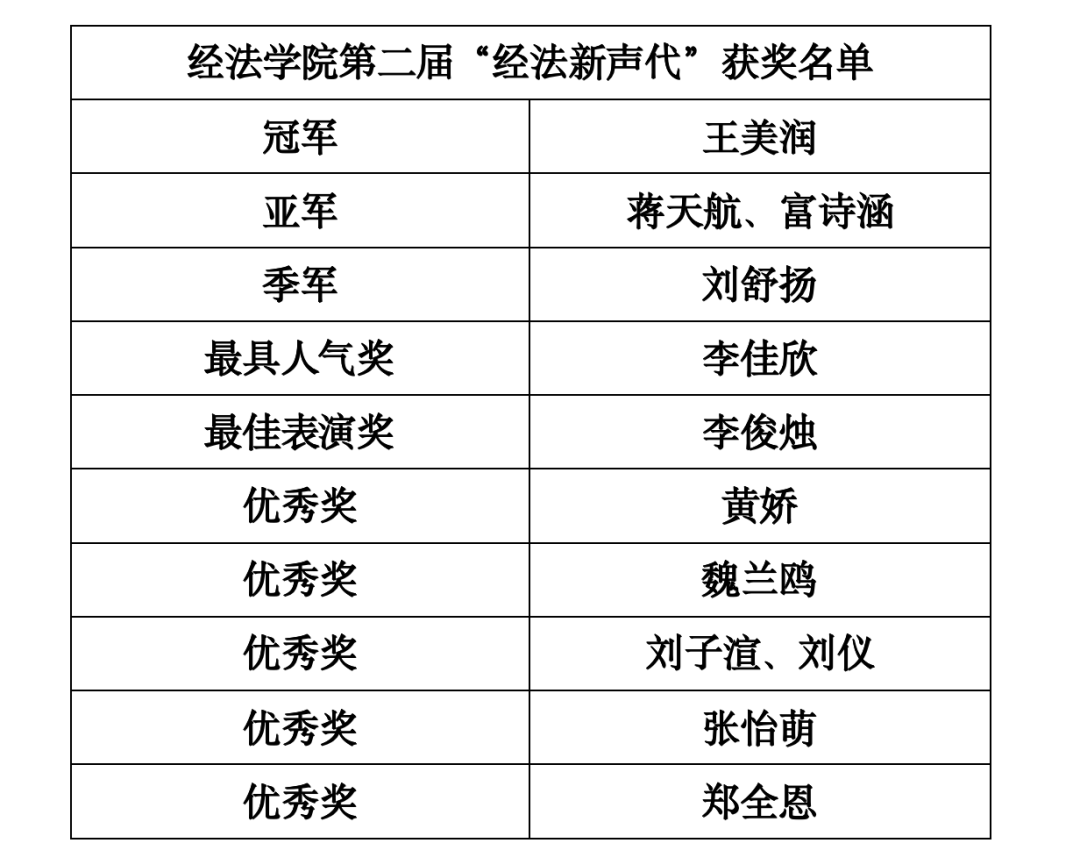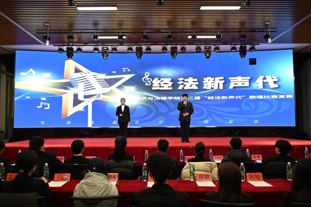 11月28日,經(jīng)法學(xué)院于藝術(shù)館舉辦第二屆“經(jīng)法新聲代”歌唱比賽,經(jīng)法學(xué)院團(tuán)委副書記張鵬飛、學(xué)院團(tuán)委、學(xué)生會(huì)各部門負(fù)責(zé)人以及各學(xué)院學(xué)生會(huì)文化活動(dòng)部負(fù)責(zé)人出席并擔(dān)任評(píng)委,經(jīng)法學(xué)院2024級(jí)全體學(xué)生參加。