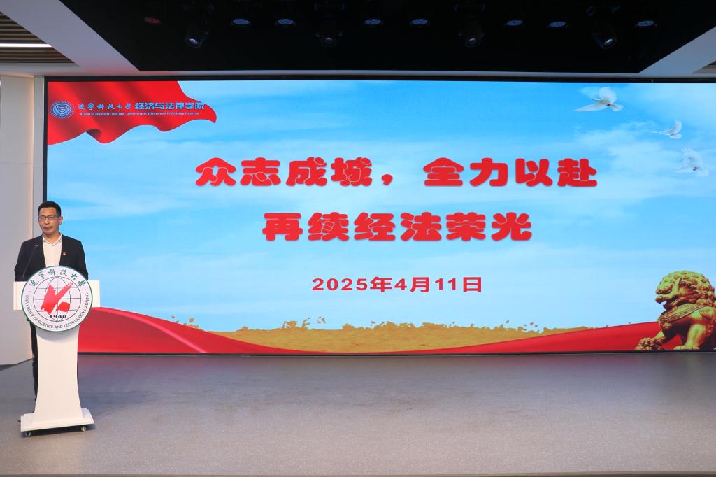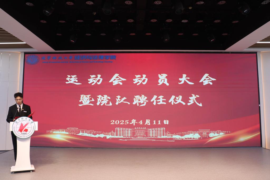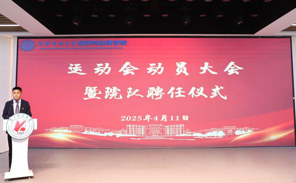 4月11日,經法學院于明德樓大學生活動中心召開第53屆校運動會動員大會暨院隊聘任儀式。本次大會由學院團委副書記張鵬飛主持,學院黨委書記趙智博、黨委副書記張國華、學辦主任齊艷萍出席,學院各院隊正、副隊長、全體團學骨干以及2024級全體學生共計300余人參加會議。