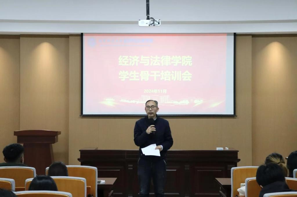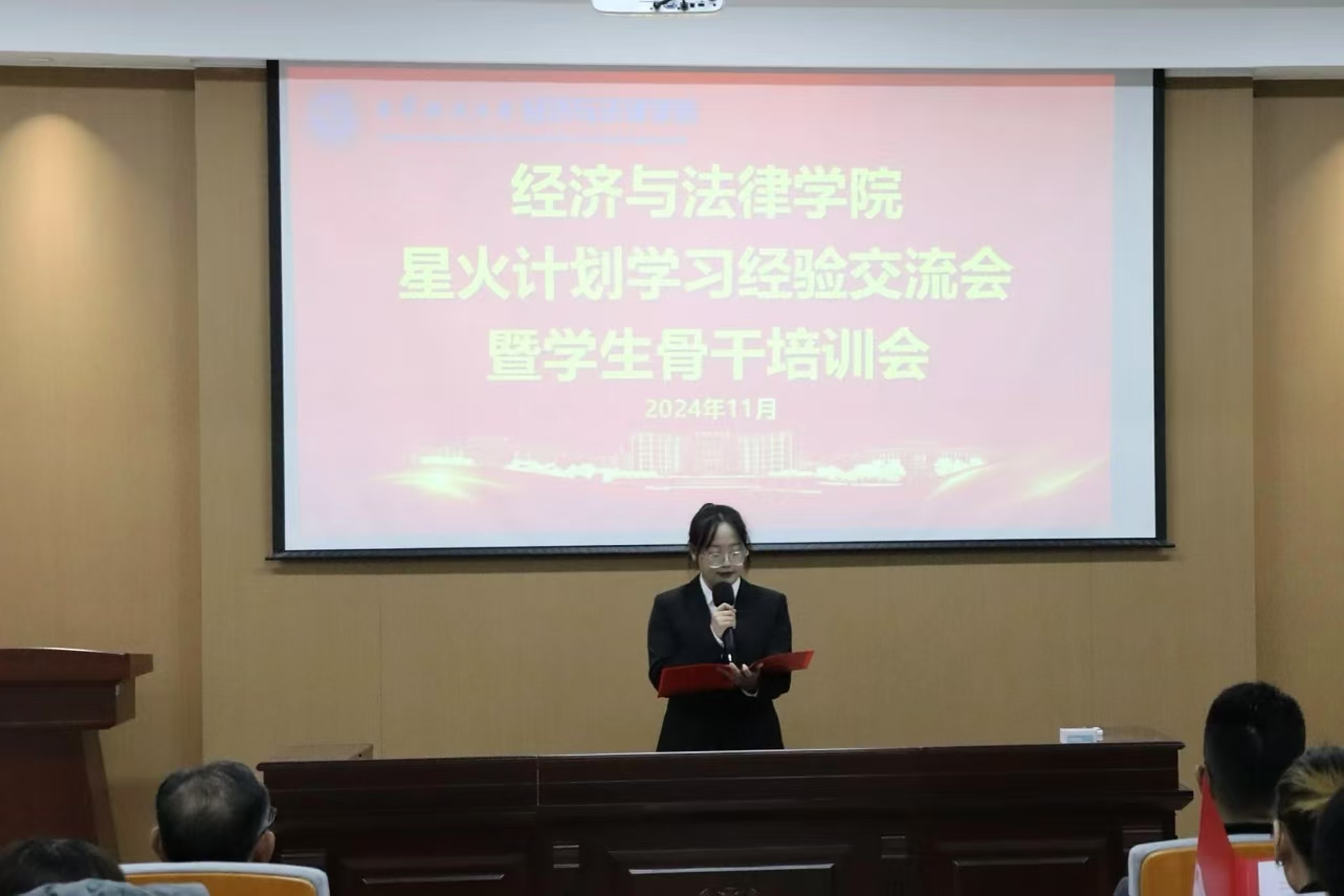 11月7日,經法學院于博識樓A402召開“星火計劃”學習經驗交流會暨學生骨干培訓會。學院黨委書記趙智博、黨委副書記張國華、學辦主任齊艷萍、團委副書記張鵬飛出席會議,2024級全體班委會成員及2022、2023級班長、團支書參加了會議。本次會議由學生會學術科技部工作人員劉兆薇主持。