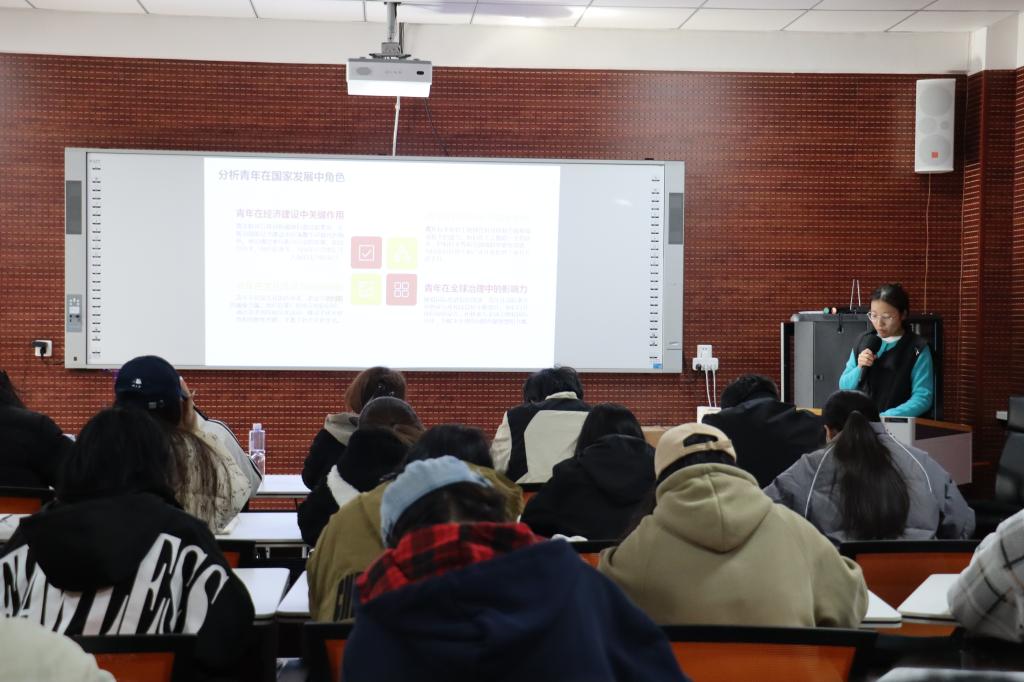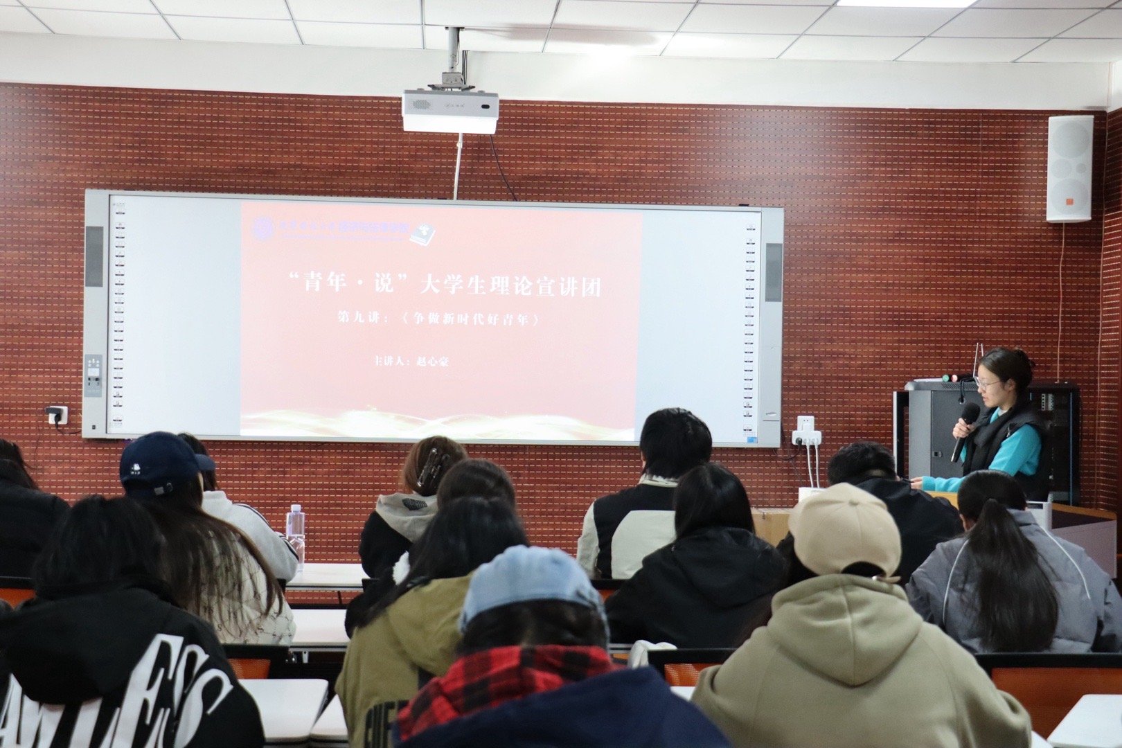宣講會上,趙心豪以“爭做新時代好青年”為主題,圍繞培養理想追求、彰顯擔當精神、發揚吃苦耐勞品質以及堅持努力奮斗四個方面,帶領大家深入了解新時代好青年的內涵。她深入分析了青年在經濟、科技、文化和全球治理等方面發揮的重要作用并回顧了共青團帶領青年的光輝歷史,深刻闡釋了青年在新時代應有的擔當精神。同時,趙心豪以王傳超等當代優秀青年的典型事跡為例,深刻印證了新時代青年只有艱苦奮斗,才會創造美好未來,取得輝煌成就的真理。