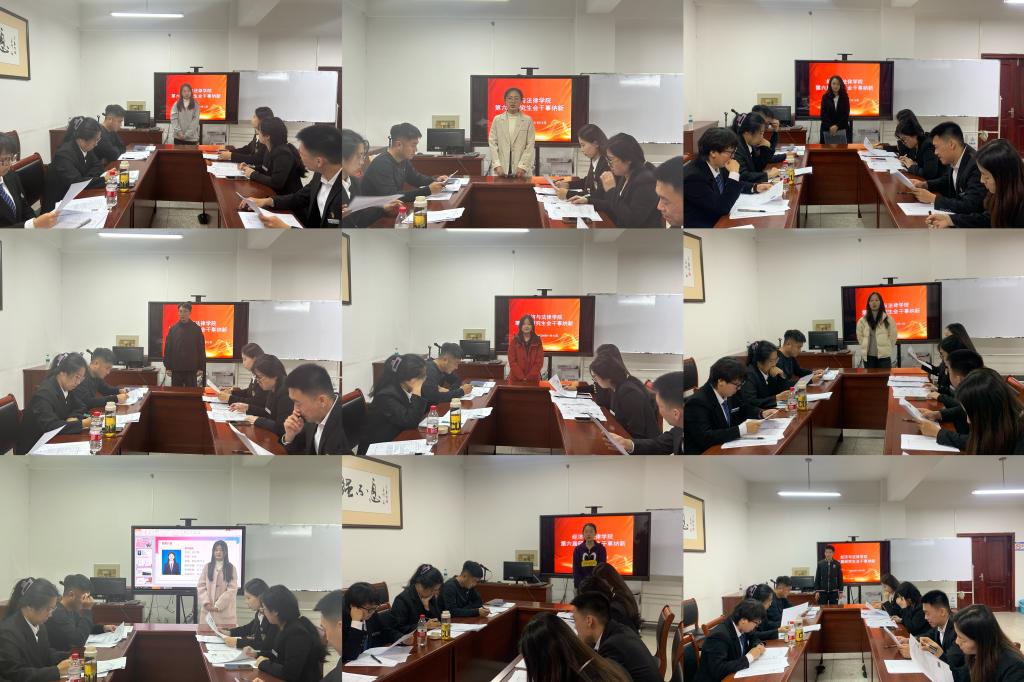 為加強學院研究生會骨干建設,11月12日,經法學院于博識樓A311開展第六屆研究生會干事納新工作。經法學院團委副書記張鵬飛、第五屆研究生會主席團成員及各部門負責人擔任評委,共有24名2024級研究生參與競選。