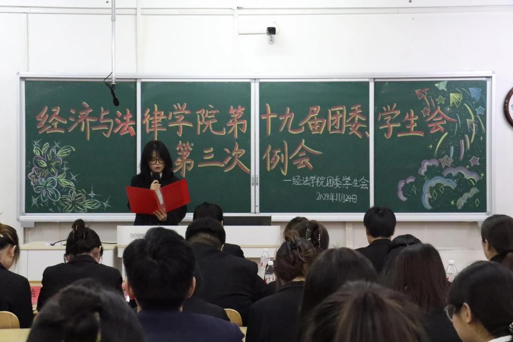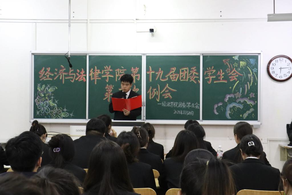 11月24日,經法學院于博學樓c413召開第十九屆團委、學生會第三次例會。會議由學院學生會執行主席兼辦公室負責人趙心豪主持,第十九屆團委、學生會全體團學骨干參加了本次會議。