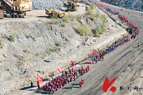 來自遼科大“暖風(fēng)”郭明義愛心團(tuán)隊(duì),化學(xué)工程學(xué)院、土木工程學(xué)院等7個(gè)學(xué)院的350余名大學(xué)生,“民族之家”40余名少數(shù)民族學(xué)生,以及30余名中小學(xué)生代表、20余名教師在郭明義的帶領(lǐng)下,高舉旗幟,沿著礦山公路徒步前行。一路上,大學(xué)生與中小學(xué)生手拉手,共同感受礦山工人的艱辛與奉獻(xiàn)。
