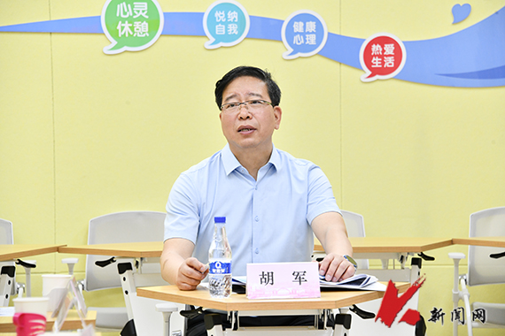 調研期間,胡軍實地走訪大學生心理健康教育服務中心,詳細了解大學生心理健康教育、心理咨詢、危機干預等工作開展情況,并在加強心理咨詢師專業(yè)培訓、豐富心理健康教育課程內容、完善危機預警機制等方面給予具體指導意見。