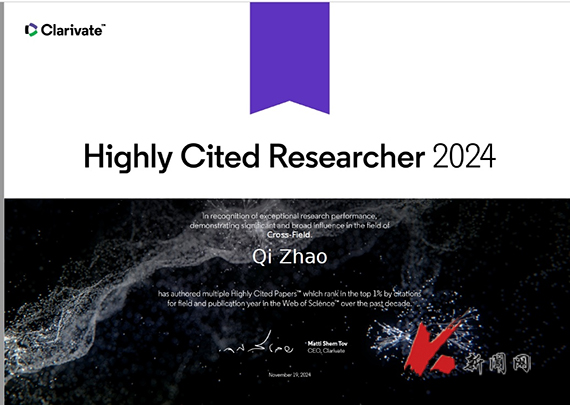 遼科大趙琪教授入選2024年度“全球高被引科學家”
