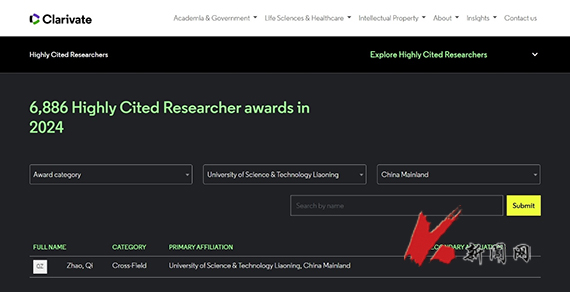 11月19日,權威學術評價機構科睿唯安(Clarivate Analytics)公布了2024年度“全球高被引科學家”(Highly Cited Researcher)名單。遼寧科技大學計算機與軟件工程學院趙琪教授入選該榜單。