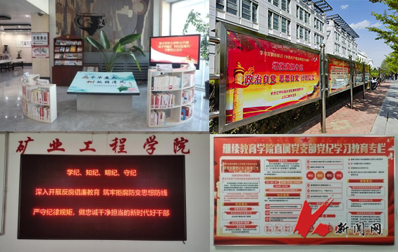 將學校廉潔教育基地打造成為黨紀學習教育的新陣地,設置《條例》專題版塊,有效推動黨紀學習教育在廉潔教育基地常態化開展。充分運用校園宣傳陣地,制作《條例》宣傳櫥窗,張貼《條例》負面清單,為全校各級黨組織和全體黨員劃出行為紅線。在圖書館專門開設廉潔文化讀書角,積極傳播廉潔文化,發揮廉潔文化以文化人作用。各院級單位黨組織充分利用室、廊、墻、屏、網等載體開展廉潔教育,因地制宜打造廉潔文化陣地,使清廉文化與校園文化緊密融合、相得益彰。