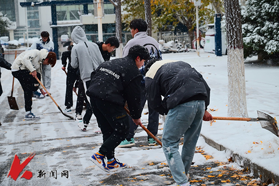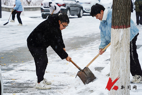 雪是涼的,手里的雪球卻是熱的,一陣陣歡聲笑語打破了雪里的寂靜,大家都看準(zhǔn)目標(biāo),互相投擲。下雪是景,掃雪是情,也有一些同學(xué)正在為來往師生開辟道路。這許許多多美好的瞬間都被手機(jī)記錄了下來。