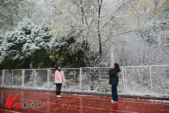 滿天的雪花靜靜落下,時(shí)間仿若在風(fēng)中靜止,校園中的一切猶如一張潔白畫布,師生被定格于此,無意間成為畫中的主角。