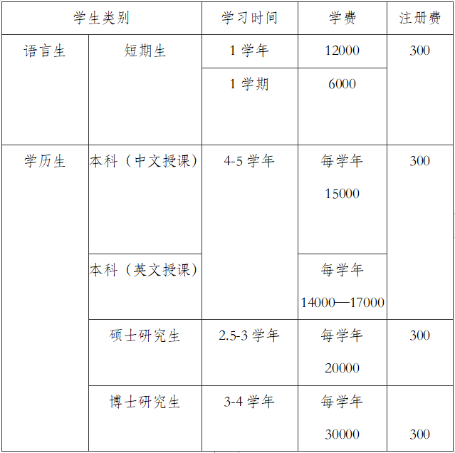(二)來華留學生的學費于每學年開始時一次性收取。