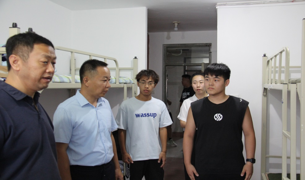 在走訪過程中,學院領導與同學們親切交流,了解同學們的基本情況,關心他們來到學校是否適應,詢問省外同學飲食是否接受,并仔細檢查了住在上鋪同學的設施安全。認真聆聽了同學們的心聲。學院領導如同父母一般同新生們聊家常,讓新生有如在“家”的感覺,同學們來自五湖四海,齊聚一堂,要珍惜彼此之間的友誼,相互包容,增進理解,共同發展。