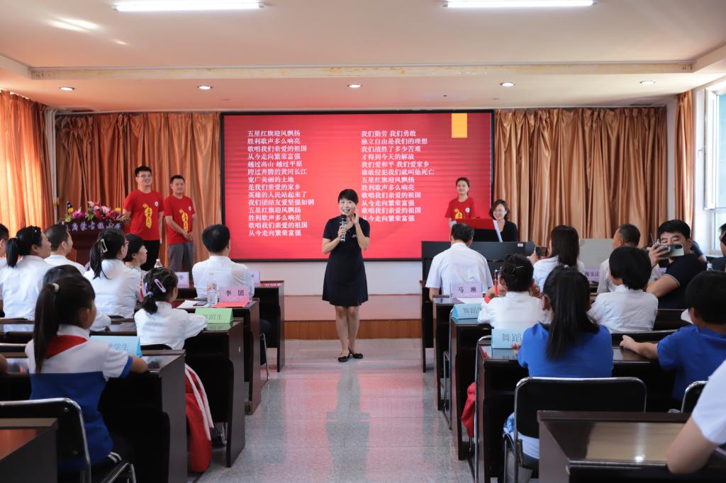 在此期間,藝術學院師生和蒙古族小學學生共同開展了“美育浸潤”主題節目展演。首先,由藝術學院曲藝系學生代康康、劉星宇表演快板《天安門廣場看升旗》,獲得了在座師生的陣陣掌聲,在與同學們的互動下,大家共同學習,對曲藝藝術和傳統文化有了更加深入的了解;其次,播音與主持藝術專業張彥如老師給同學們朗誦古詩詞《登鸛雀樓》、《天凈沙 秋思》、《將進酒》,帶著同學們置于詩詞的世界,在語言中感受美,愛上美;期間,蒙古族小學學生表演了舞蹈《有個姑娘》、《夢想家》,最后,由藝術學院副院長馬琳鋼琴伴奏,院長李囝帶領大家齊唱《歌唱祖國》,將活動氣氛推向了高潮,置身其中激發起孩子們愛國的情懷,拉進了心與心的距離,把美育教育浸潤到每個孩子的心里。